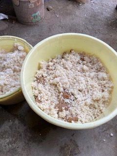 で、潰した味噌玉に 麹と塩をまぶしま~す 麹はお義母さん特製 いつもはお米で作るけど 今年はもち米で作ったんだって 美味しいに違いない!