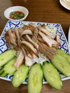 味、辛さ、臭い とにかく強烈! 食材を買いにくるお客様 食事に来るお客様は タイの方たちばかり 次は豚の首のナンチャラ パクチー入りのスイートチリソースに 付けて食します