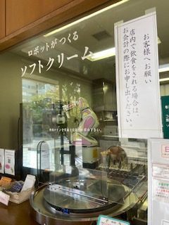 こんにちは ひまわり不動産の増澤です ロボットにソフトクリーム 作ってもらいました~と言うのは・・・ 松本の名店『開運堂』にある 世界初のソフトクリームロボット 先ずは店頭で注文 コインを買いま~す