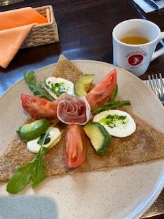 見栄えがチョット 先日のガレットと違う 理由は生地が厚いのと 乗せた具が多すぎて 包めなかったから。。 クレープ生地の蕎麦粉は 塩尻産の挽いたばかりの 今年の粉 具材は・・・ ※14ヶ月熟成の生ハム ※モッチァレラチーズ ※野菜いろいろ 味はバツグン! ボリュームもバツグン! スパークリングワインが すすむ君でした~ 次回のガレットは 何乗せる~? 次は包めるかなあ~ ひまわり不動産(株) 増澤京子