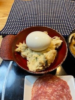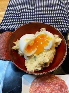 こんにちは! ひまわり不動産の増澤です 時々行く近所のお店 『ワイン居酒屋サルト』 ココのポテトサラダが ちょっと独特でお気に入り ポテサラ好きな 旦那さんが作った サルト風ポテサラ↓で~んとのったゆで卵 これを割るとこの通り~