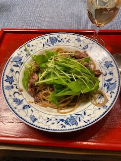 で、次は飲み物を 白ワインに変えて ホタルイカスパゲッティ~