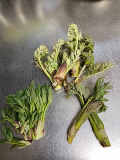 ナント旦那さん実家の 庭で調達した山菜たち 大人だから分かる 山菜の美味しさ 山菜の天ぷら 第2弾は何かしら~ ひまわり不動産(株) 増澤京子