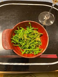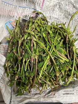 答えは『ホップ』です 野生のホップのツルの部分 お義母さんが山から 採ってきてくれました~ で、この通り 茹でてお浸しで いただきま~す