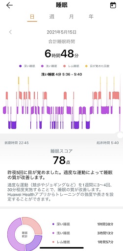 こんにちは! ひまわり不動産の増澤です 良質な睡眠は大切 だけど良質な睡眠って? で、見える化して 改善を図ってま~す コレは昨夜の睡眠↓ 睡眠スコア78点 目標の80点にチョット及ばず。。スマートウォッチをしたまま 寝るとこの通り~ 色々なデータが計測されます 不思議だわあ~