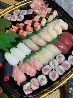 こんにちは! ひまわり不動産の増澤です 昨日の定休日 旦那さんの実家で 『母の日&父の日食事会』 しました~ 田んぼ作業が始まて お義父さんもお義母さんも 毎日大忙し という事で まとめてやっちゃえ~ で、ケータリングして お家で食事会 ビールで乾杯~ お刺身の盛り合わせは 中町通りの『三重鮨』さん 中トロやウニが 美味しかったな~で、お寿司はこの通り~ どのネタも美味しくて お義父さんもお義母さんも 喜んでくれました~