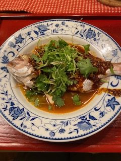 コチラは蒸した鯛に タイ風ソースに たっぷりパクチー