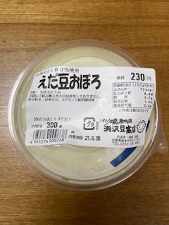こんにちは! ひまわり不動産の増澤です このところ 我が家のマイブームは・・・ 『枝豆豆腐』毎週木曜日の夕方 中山の『洞沢豆腐店』が 行商に来てくれます 1週間分のお豆腐や油揚げを 色々買うんだけど この『えだ豆おぼろ』が スンゴク美味しいの! 原材料は ・信州大豆 ・枝豆 以上