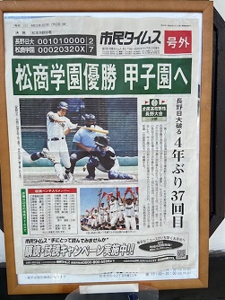 こんにちは! ひまわり不動産の増澤です 東京オリンピック2020が 始まりました~ いつもは10時に就寝の私 昨夜は開会式を観ちゃって 寝不足です。。 しばらくオリンピックで 盛り上がりそうですが 今朝の朝ウォーキングで 料飲店の店先にこんな号外が!松商学園が甲子園出場 決まったんですね~ 私は松商のOBじゃないけど やっぱり中信地区からの 出場は嬉しいもの 開幕は8月9日かあ 先ずは一勝目指して ファイトー! ひまわり不動産株式会社 増澤京子