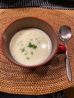 カテゴリー: 日記 | 美味しいものこんにちは! ひまわり不動産の増澤です 夏のスープと言えば 『ビシソワーズ』 ジャガイモの 冷たいスープですジャガイモと玉ねぎは お義母さんの手作り どちらも採れたて 美味しいに決まってる で、やっぱり 美味しいー! ちなみにパセリは 我が家のプランター作 毎日イヤになるほど暑いけど 美味しい夏ごはんで 乗り切るぞー! ひまわり不動産株式会社 増澤京子