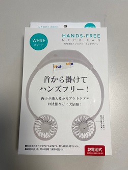 こんにちは! ひまわり不動産の増澤です 立秋は過ぎても まだまだ暑い毎日 で、コレ買いました~ 前から気になってたのハンズフリーの 個人用扇風機 種類は色々あったけど とりあえず一番安いの 買ってみた 電池入れて イザ、スイッチオン!