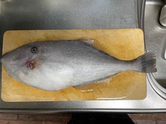 こんにちは! ひまわり不動産の増澤です 美味しいお酒は 美味しいアテと頂かないと で、『ウスバハギ』 大物丸ごとゲット! カワハギの一種らしいこのぷっくりしたお腹に 美味しい肝が詰まってるはず さばいたのは旦那さん で、この通り~