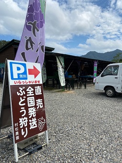 こんにちは! ひまわり不動産の増澤です 信州はフルーツの宝庫 今が旬のぶどう狩りに 行ってきました~巨峰が産地の生坂村 村松農園さんへレッツゴー ぶどう園には 養生された ぶどうが鈴なり~ ズッシリ重めの この房をチョキン