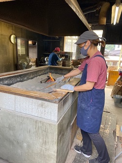 こんにちは! ひまわり不動産の増澤です 信州の郷土料理 と言えば『おやき』 おやきで有名な 生坂村の『勝家商店』へ 囲炉裏の灰で すすけちゃった看板お店の中はこの通り~ 大きな囲炉裏は まるで灰のプール 灰をかぶせながら 場所を変えながら 焼く事40分だって!