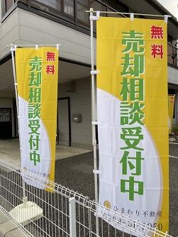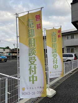 カテゴリー: 不動産のこと | 日記こんにちは! ひまわり不動産の増澤です ひまわり不動産の 玄関先には数本の 『のぼり旗』気が付いたら 色あせてました。。 太陽には当たりっぱなし 雨にも濡れっぱなし 毎日毎日24時間 文句も言わず 働いてくれてるのに で、新しいものに 変えました~