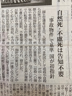 こんにちは! ひまわり不動産の増澤です 不動産の『事故物件』について 国が初めて判断基準を 示しました不動産売買情報に 『告知事項あり』と 書かれている場合があります 詳細は直接お尋ねください といった具合です 公表した内容は 以下の通りです ※告知義務ナシ ・病気による自然死 ・老衰による自然死 ・階段での転落による死亡 ・入浴中の溺死etc. 不慮の死は告げなくても 良い事になりました 人間誰もがいつかは 死ぬのですから 死は特別な事ではないにしろ 生活する基盤である 自分の家に関しては ハッキリさせておきたいもの しかし決まりは決まり 感じ方は人それぞれです ひまわり不動産としては 知り得たマイナス情報は お伝えしたいと思います ひまわり不動産株式会社 増澤京子