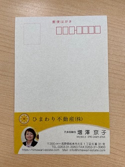こんにちは! ひまわり不動産の増澤です ひまわり不動産の オリジナルのハガキがコレ↓名刺代わりに 顔写真・住所・連絡先が 入ってます で、裏はこの通り~ このひまわり可愛いでしょ?