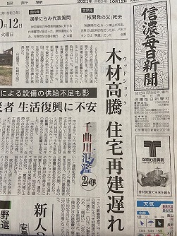 こんにちは! ひまわり不動産の増澤です 今朝の信濃毎日新聞 一面の記事はこの通り一昨年の台風19号で 被災された長野県内の方々の 住宅再建がままならない という内容です アメリカの住宅需要の高まり 中国の景気回復etc. 要はコロナの影響が 回り回ってウッドショックを 招いたって事ですよね マイホーム計画は 家族のビッグイベント 建築の時期は それぞれご家族の 状況によって異なります で、このウッドショック 解消時期も未定なら 価格の高騰も避けられない 今こそマイホームを! と検討されている ご家族にとっては大問題です 急ぐべきか 静観するべきか 大切な決断です 建築会社さんによって 状況は異なると思われます 残念ながら 不動産会社の立場では 的確なアドバイスが出来ません いくつかの意中の建築会社さんで お話を聞いて今後の方針を 検討してください ひまわり不動産株式会社 増澤京子