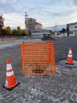 大きな穴が開いてた 危ないわあ~ 危険な場所を示す ポールは良くあるけど この網バージョンは 初めて見た コレ、目立って安全よね 工事現場も日々 進化してるのね~ ひまわり不動産株式会社 増澤京子