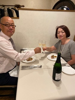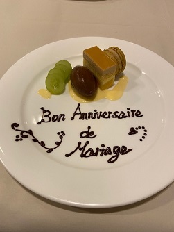 こんにちは! ひまわり不動産の増澤です 11月12日 今日は結婚記念日です 四柱神社で結婚式を 挙げてから丸4年 で、今朝旦那さんに 『今日は何の日でしょうか?』 と聞いたところ・・・ 『燃えるごみの日』だって。。 ダメだこりゃ とは言いつつ 先日ちょっと早い 結婚記念日ディナー 楽しんできました~おしゃれして向かったお店は 『ビストロ・ブランシェ』 大好きなお店です で、スパークリングワインを開けて 『乾杯~』 前菜から始まって お魚&お肉のフルコース どのお料理も美味しかった~