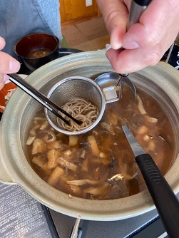 我が家にとうじ蕎麦用の 道具があるわけも無く 味噌こしで代用 チョット雰囲気に 掛けるけど。。 さて、実食! ふんふん、ふ~ん 先日食べた 奈川の蕎麦の記憶が よみがえって・・・ まあ、楽しかったし 〆の雑炊も美味しかったし うん、とうじ蕎麦は 奈川に限るわあ~ ひまわり不動産株式会社 増澤京子
