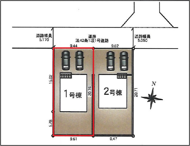 北 5.08m(幅員) 公道 9.44m(接面) |