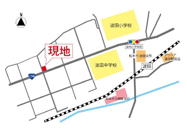 波田駅から700mほど国道158号を西へ進んだ場所。