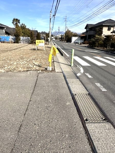 車通りが多い国道沿いの土地ですが、2方向道路の角地なので、西側道路からも出入りできるのが便利です。