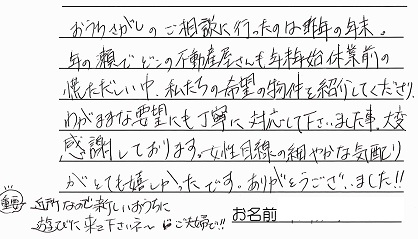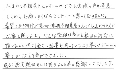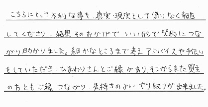 ひまわり不動産さんのホームページでお客様の声を拝見してからお願いするならここで・・・と思っておりました。